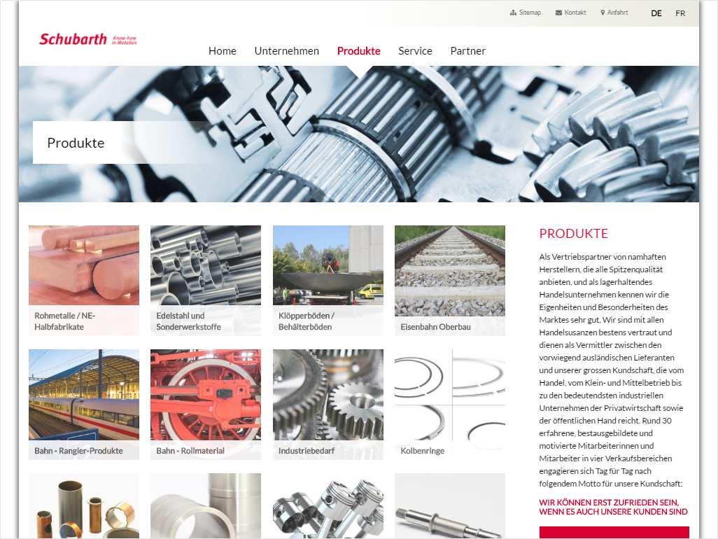 Erstes Anliegen für den Relaunch war die responsive Umsetzung der mehrsprachigen Webseite. Daneben galt es, das sehr umfangreiche Produktportfolio der Firma Schubarth + Co in seiner Breite möglichst anschaulich zu präsentieren, gleichzeitig aber auch so schnell, direkt und einfach wie möglich zugänglich zu machen.