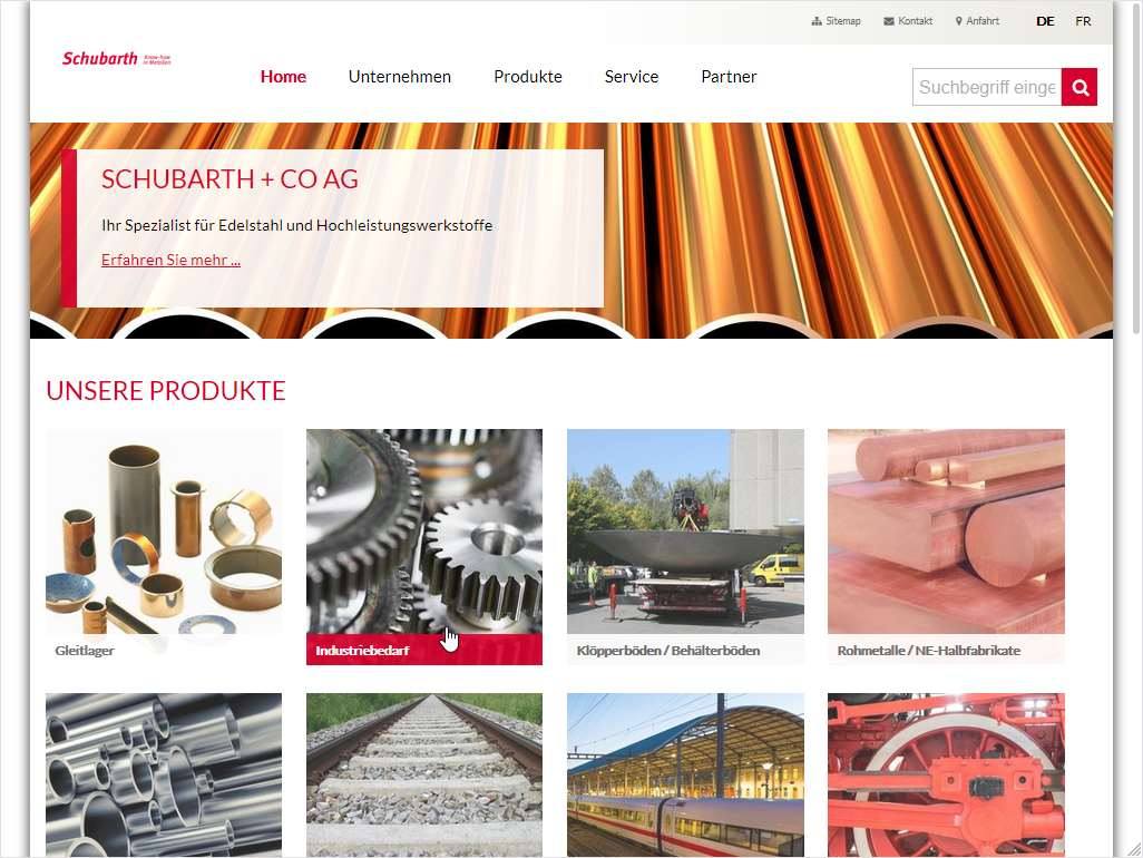 Der Slider auf der Startseite und die grosszügigen Headerbildern visualisieren eindrucksvoll und lebendig die ganze Bandbreite der Produkte, die Schubarth vertreibt. Über verschiedene Kontaktformulare können Kunden direkte Produktanfragen stellen, die jeweils direkt in die entsprechende Abteilung zugestellt werden. Der Sprachenwechsler erlaubt es den Webseitenbesuchern, jeweils zwischen den beiden Sprachversionen hin und herzuwechseln, zudem werden über die gleiche Contao-Installation auch noch weitere (ebenfalls mehrsprachige) Mandanten betrieben.