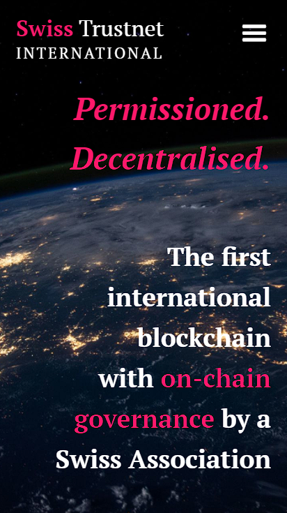 Zügig geht es zu bei Startups und auch in der Blockchain-Welt - kein Problem, wenn man sich erst einmal daran gewöhnt hat. Im Fall von Swiss Trustnet International lautete die Aufgabenstellung, innerhalb von ein paar Wochen ein Basis-CI inkl. Wortmarke und die dazugehörige Webseite zu entwickeln. In beidem sollten die Besucher die Verbindung aus moderner Blockchain-Technologie und der Sicherheit eines Schweizer Vereins wiederfinden.